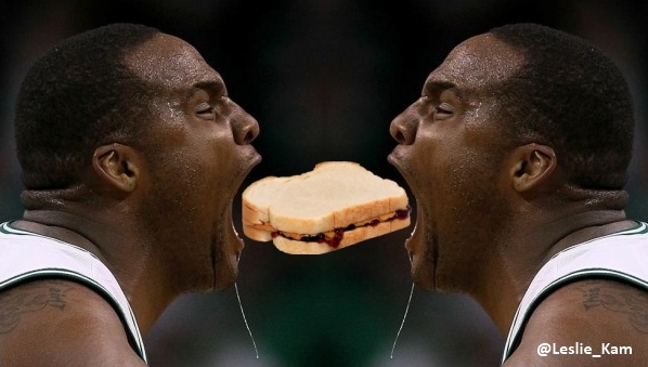 Exatamente 1 hora antes de todos os jogos, Kevin Garnett faz uma boquinha: um sanduíche de manteiga de amendoim com geleia. Leve, né? A superstição do ex-MVP é tão forte que quando ele jogava em Boston, vários dos outros jogadores dos Celtics começaram a comer essa bomba de energia. Imagina só quantos o Baby Davis não deveria mandar?